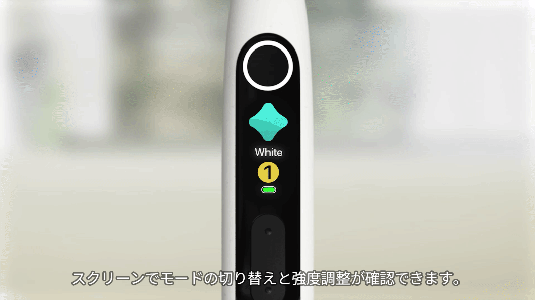 ホワイト、センシティブ、ポリッシュ、クリーニング、ガムケアの5つのモード選択を搭載。それぞれに5段階の振動レベルから選択でき、目的や体調に応じて適切なブラッシングができます。
