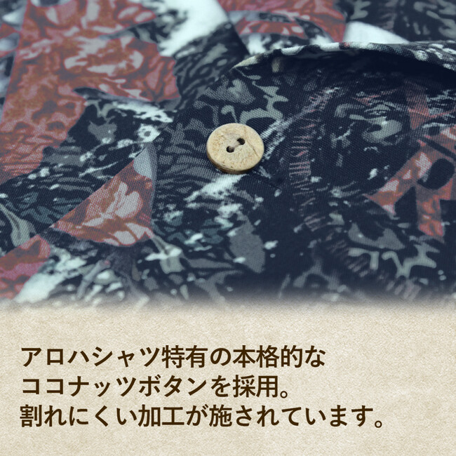 アロハシャツ特有の本格的なココナッツボタンを採用。割れにくい加工が施されています。