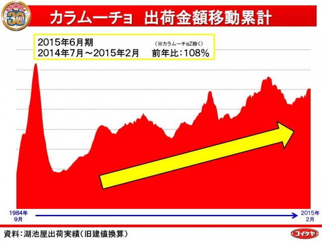 これらの取り組みが様々なメディアにおいて話題を呼び、2015年2月末までの「カラムーチョ」ブランド全体の売上実績は前年比108%を記録。「カラムーチョ」を中心に好調な『ムーチョ』ブランド全体の全世界売上金額は100億円を超え、過去最高を記録しました。