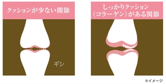 「ひざコラ」は、ひざ関節の曲げ伸ばしを助ける、コラーゲンペプチド配合の機能性表示食品です。体内のコラーゲンは、軟骨などを形成する、関節にかかる外部の力をクッションのようにしっかり受け止め、軽やかな動きを生み出す重要な成分です。しかし、コラーゲンは20歳を超えると急激に減少していき、50歳を超えると、20歳の頃の約半分にまでなってしまいます(※1)。これがひざの曲げ伸ばしがつらくなる一因となるため、ひざの曲げ伸ばしがつらくなる前に、早めのケアをすることが重要です。「ひざコラ」には吸収効率が良いコラーゲンペプチドを機能性関与成分として採用し、さらに「ヒアルロン酸(※2)」「コンドロイチン(※2)」といった軟骨成分も配合しています。日頃の食事だけでは十分に摂りにくいこの3つの軟骨成分を一度に手軽に摂取することができます。