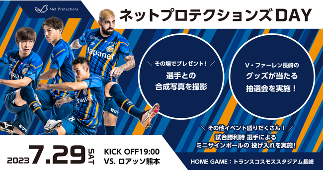 株式会社ネットプロテクションズは、V・ファーレン長崎 のホームゲームにおいて、冠スポンサーとしてV・ファーレン長崎 VS ロアッソ熊本 戦を「ネットプロテクションズDAY」として2023年7月29日(土)に開催いたします。