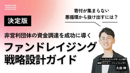 2024年3月には「READYFOR ファンドレイジングサービス」を開始し、非営利団体・学校法人・文化施設などの寄付集めの戦略設計と実行伴走に取り組んでいます。本ナレッジの公開により、伴走現場で培った知見を広く開放し、非営利団体が知見を得て実践できる環境づくりをさらに進めてまいります。