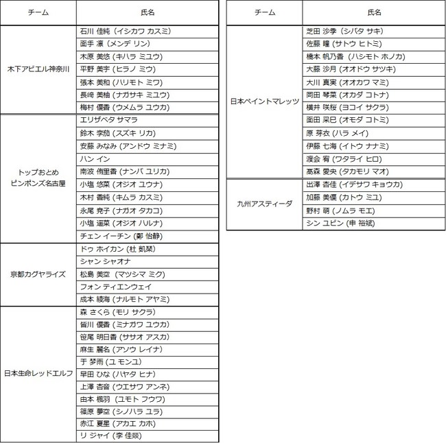 Tリーグでは、2022-2023シーズン 登録完了選手を以下の通りお知らせいたします。