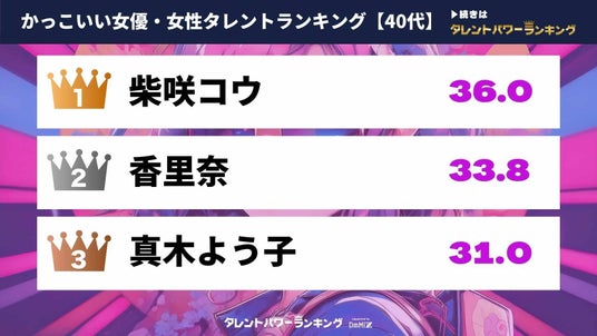 40代では、2023年11月に、これまで自身が出演した作品の主題歌や挿入歌などをカバーしたアルバム「ACTOR'S THE BEST~Melodies of Screens~」をリリースするなど、歌手としても活躍している女優が1位にランクイン。