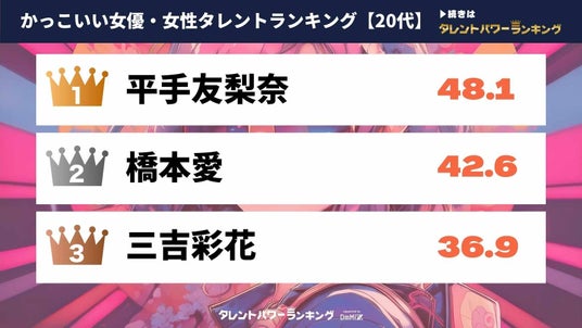 20代では、欅坂46のメンバーとして活躍後、テレビ朝日系ドラマ「六本木クラス(2022年)」やフジテレビ系ドラマ「うちの弁護士は手がかかる(2023年)」に出演し注目された女優が1位にランクイン。