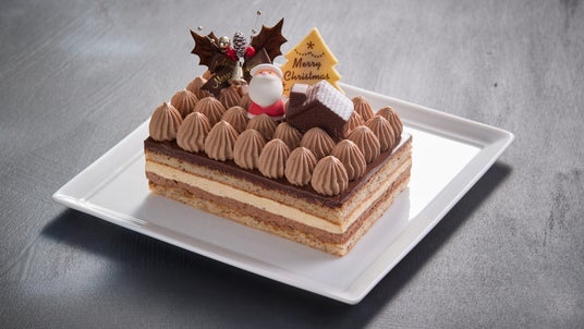 フランスの伝統菓子マルジョレーヌを、見た目も楽しくクリスマス風にアレンジしたケーキ。特別なアーモンドメレンゲの生地に香ばしいヘーゼルナッツのクリーム、濃厚なチョコレートが全体を包み込んだ絶妙な味わいはお子様から大人まで幅広くお楽しみいただけます。