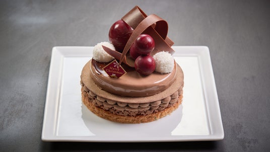グリオットとラズベリーのガナッシュがアクセントになり一口毎に広がる贅沢な味わいがお楽しみいただけます。