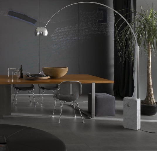 1962年発表、アキッレ&ピエール・ジャコモ カスティリオーニ兄弟による大きな弧を描くオブジェのような「ARCO」は、世界中で愛用されているフロス社を代表する近代照明デザインの名作です。アルコとは「アーチ」を意味し、重厚な大理石ベースから美しいステンレスのポールが華麗なアーチを描きます。