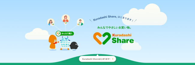 このたび、あらたにソーシャルグッドな購入体験を提供したいと、みんなでお買い物することが、地球や人へのやさしさにつながり、たくさんのソーシャルグッドが生み出される、やさしいお買い物「Kuradashi Share」の提供を開始いたします。