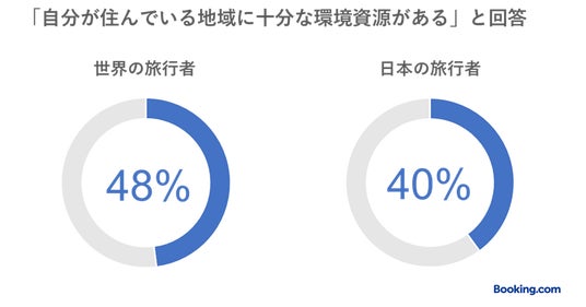 ●世界の旅行者のうち48%(日本の旅行者:40%)が「自分が住んでいる地域に十分な環境資源がある」と考えている。