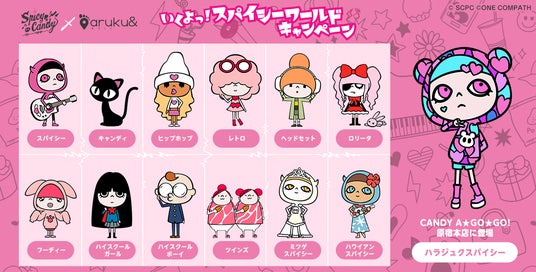 アプリ内に住民キャラクターとしてスパイシーたちが登場します。全国にランダムに出現するキャラクターとキャンペーン期間中に「CANDY A☆GO☆GO! 原宿本店」に出現する「ハラジュクスパイシー」がイベントを盛り上げます。