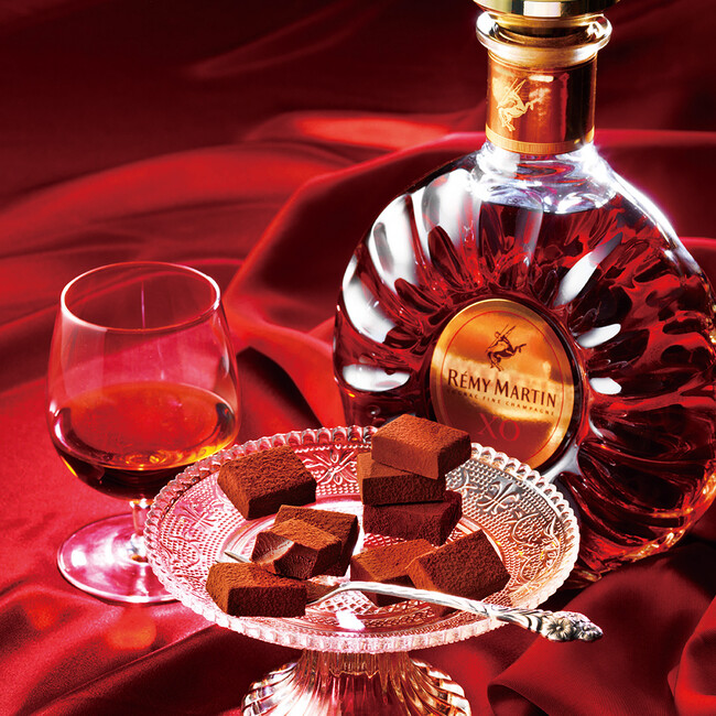 フィーヌ・シャンパーニュ・コニャックの最上級品「レミーマルタン XO」とカカオ感豊かなチョコレートを合わせた生チョコレート。レミーマルタン XOの豊潤で複雑な香りと洗練された味わい、なめらかな余韻、カカオとの調和をお楽しみください。