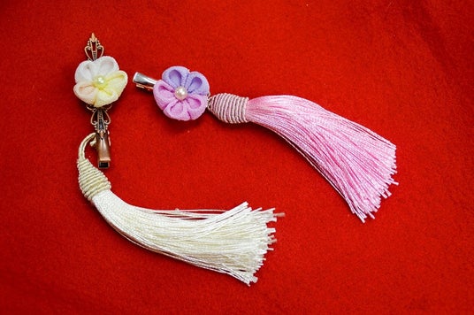 ちりめん布で作成したお花を組み合わせて、和飾りを作成します。好きな色をお選びいただき、その場でスタッフが組み上げます。