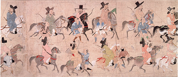 江戸時代を通して、将軍や大名の武芸の訓練の狩猟は、野生の鹿や猪、野鳥などを対象に、江戸の近郊で繰り広げられました。鷹狩は、飼いならした鷹などの猛禽類を放って行う狩猟で、獲物は、鶴や雁、鴨などの野鳥でした。一方、鹿狩は、巻狩という大規模な狩猟が行われ、野生の鹿や猪、ウサギ、キジなどが捕られました。狩猟の記録からは、野生動物の生息状況がうかがえます。
