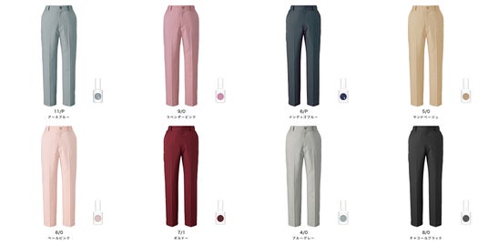 そして、住商モンブランが積み重ねてきたパターン研究と現場の声から生まれたデザインで、より美しく動きやすくスタイルアップできるシルエットのレディスパンツが誕生いたします。