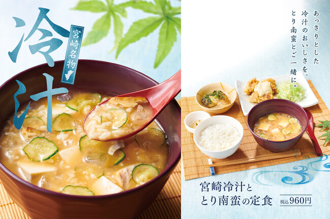 また、他の定食のみそ汁をプラス180円で冷汁に変更いただけるほか、単品でもご注文いただけます。ぜひ、「やよい軒」で宮崎メニューをお楽しみください。