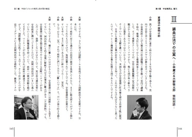 【内容見本:宇宙資源法の起案・審議に携わった議員による対談の掲載】