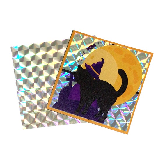 お菓子のおまけについているようなキラキラ光るホログラムシールにオリジナルデザインがプリントできます。