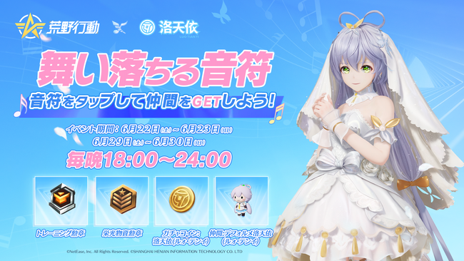 NetEase Gamesが開発・運営する大人気バトルロワイヤルゲーム『荒野行動』にて、2024年6月20日から7月3日の期間中、世界初の中国語ボーカロイド歌手・洛天依(ルォ・テンイ)とのコラボイベントを開催いたします。