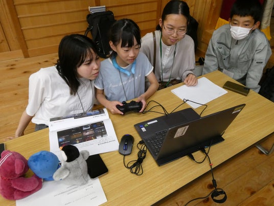 メタバース空間で笹戸町散策を楽しむ高専生と参加小学生