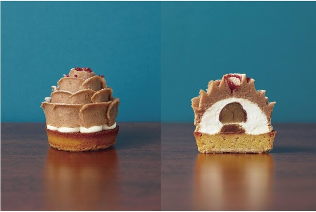 まろやかな味わいのマロンクリームで、甘酸っぱい苺のジュレやザクザク食感のメレンゲを閉じ込めました。