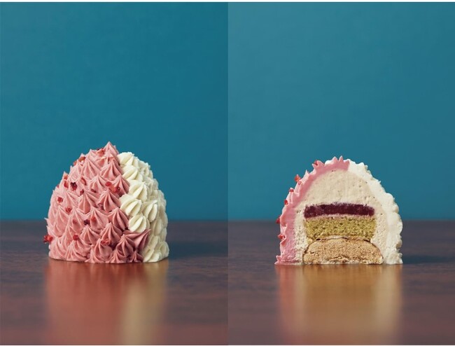 ピンク色の苺クリームと、白色のトンカ豆香るバニラクリームで仕上げた鮮やかなコントラストのモンブラン。