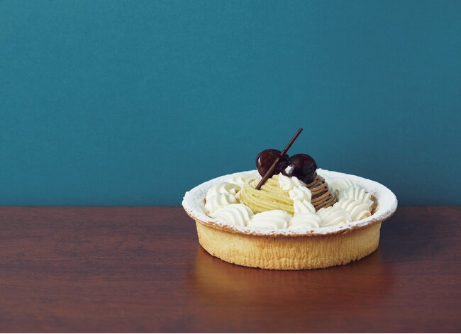 アーモンドクリームを敷き詰めて焼き上げたタルトにコニャック入りマロングラッセを加えた生クリームとラム酒の香るマロンクリームで仕上げました。