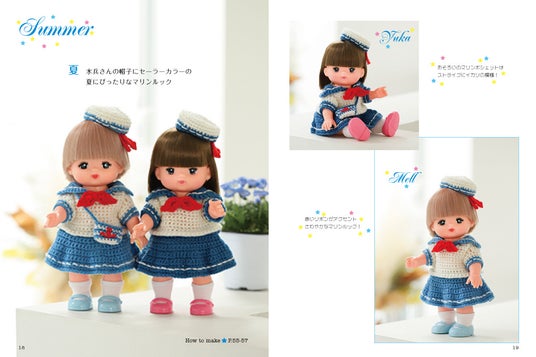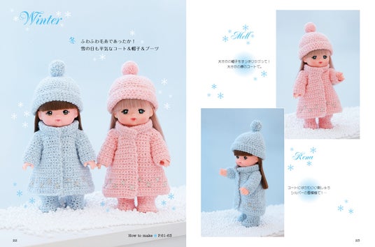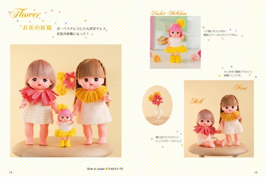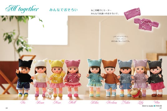 小さくてどこにでも連れて行けるポケットメルちゃんのお洋服も掲載。親子二世代ユーザーも多いメルちゃん、ぜひ編んでみてくだい。
