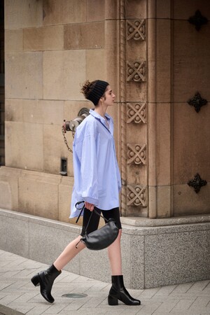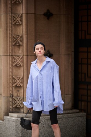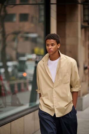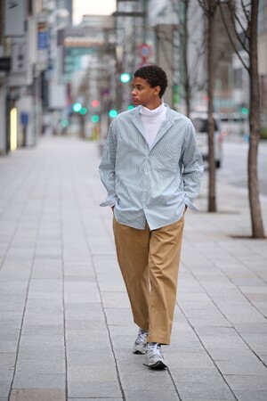 ユニセックスで着用が可能なのも〈SHIRT FIRSTHAND by 5525gallery〉の魅力です。美シルエットなので、オーバーサイズにさらっと羽織って洒落感を醸し出せます。今季はスポーティーモードなスタイリングがFirsthandおすすめの組み合わせです。