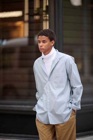 〈5525gallery〉が監修する「Firsthand」限定のカプセルコレクション〈SHIRT FIRSTHAND by 5525gallery〉。2024年春夏の新作コレクションが登場しました。定番のレギュラーカラーシャツ、スタンドカラーシャツに新色や新しいストライプ柄がラインアップ。レギュラーカラーシャツは定番の4色に加え3色が新色で登場し全7色展開、スタンドカラーシャツは定番3色に加え1色が新しく加わり全4色展開となります。また、ビジュアルは23年秋冬から継続でフォトグラファー〈荒井 俊哉(あらい しゅんや)〉氏が撮影、スタイリスト〈坂上 真一(さかがみ しんいち)〉氏がスタイリングを手掛け、クリーンで洗練された世界観を表現しました。スタンドカラーをあえて着崩し薄手のタートルニットをレイヤードしたスタイルは〈SHIRT FIRSTHAND by 5525gallery〉の定番、かつ一押しのスタイリングです。