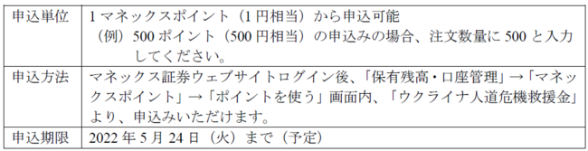 ■マネックスポイントからの「ウクライナ人道危機救援金」受付手順