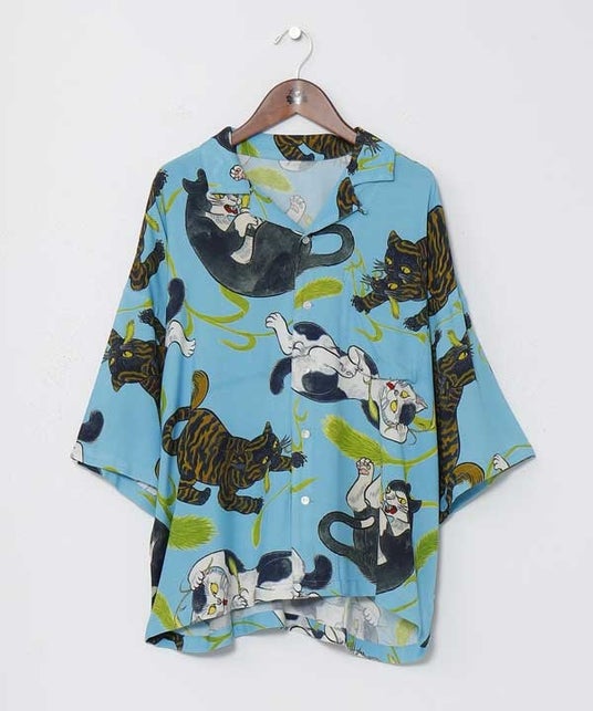 <アロハシャツ>本コラボの為に描き下ろされた柄を使用した日本風アロハシャツ。サラリとした着心地で涼やかに着られます。・サイズ:M・L 2サイズ展開
