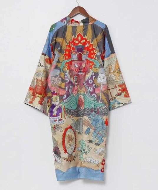 「地獄十三図」「乱眼占狐」の柄を使用した、大胆な一枚です。・サイズ:着丈(前/後) 108/103cm 肩幅 68cm 身幅 68cm 袖丈 35cm