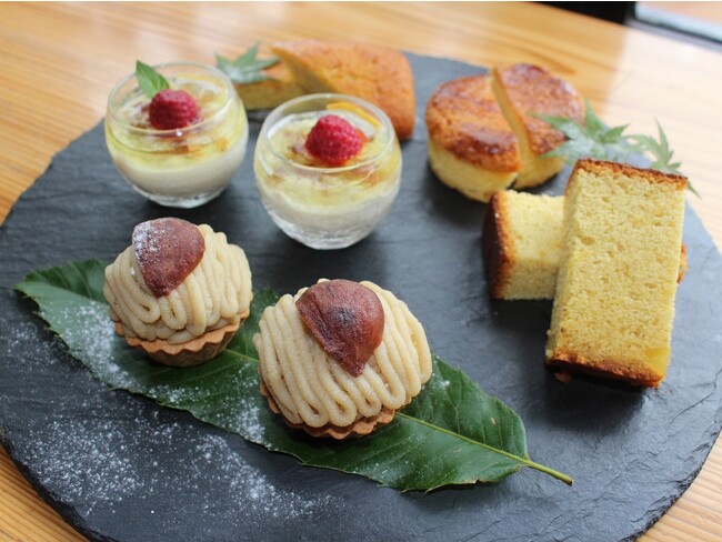 内容:西日本一の生産量を誇る山鹿和栗ペーストを使った特製モンブラン、プリン、地元山鹿で愛される菓子店のフィナンシェ等の焼き菓子、山鹿のお茶(数種類からお選びいただけます)