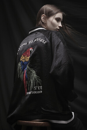 バックに「鸚鵡歸來(中国語で「オウム返し」)のテキストと共に、色鮮やかなオウムの刺繍が施された新作のスカジャンも登場。「反骨精神」を置き去りにした現代社会に対するアンチテーゼを込めたS’YTEならではのひねりの利いたモチーフがアイキャッチとなっています。