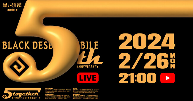 株式会社Pearl Abyss JP(本社:東京都新宿区、代表取締役社長:韓 昇煕)は、2月26日(月)に5周年を迎える『黒い砂漠モバイル』にて、様々な報酬や賞品などがもらえる5周年記念イベントを本日開始いたしました。また、5周年当日には記念生放送も実施いたします。