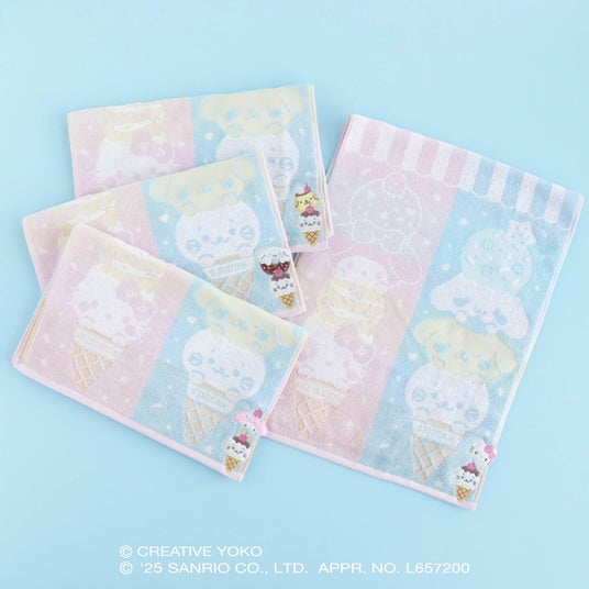 とびきりあまくてキュートなアイスはいかが?(ハート)アイスのまねっこをしたしろたんたちをタオルやふわふわグッズにしました。