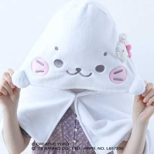 お風呂上がりやプールサイドでお役立ちのアイテム。大きなフードをかぶればあなたもしろたん!