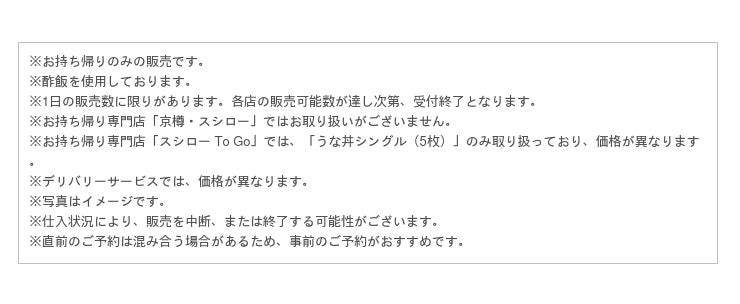 ※お持ち帰り専門店「京樽・スシロー」ではお取り扱いがありません。