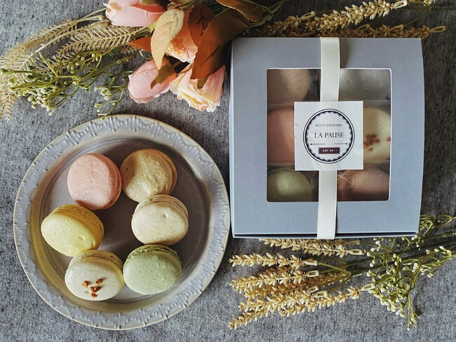 「親から子へ受け継がれていくフランス郷土菓子の魅力やおいしさを、知らなかった人たちにも伝えていきたい」という想いで作られています。本フェアでは、伝統製法のバターと2種の石臼引き粉を使用したクラシックなクッキー、バターの優しい甘みとアールグレイのさわやかな香りが口の中に広がる紅茶のクッキー、シナモンが優しく香るココアクッキーでフランボワーズジャムを挟み込んだリンツサブレなど7種類が入ったクッキー缶のほか、卵黄たっぷりの贅沢なバタークリームと自家製ラムレーズンをたっぷり使い、食べ応えのあるサブレ生地で挟んだレーズンサンド、マカロンを販売します。6種類の味がアソートで1つずつ入ったBOX入りのマカロンは本フェアにて新発売となります。味の組み合わせはプラリネ、ショコラ、ロイヤルミルクティ、ラズベリーなど。フェア期間中の前半と後半で変更してご用意します。