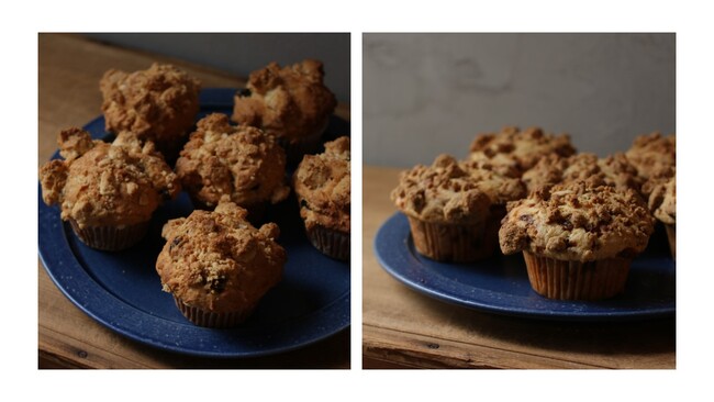 *季節のマフィン:くるみとラムレーズンのマフィン、黒糖ジンジャーマフィン 480円(税込)