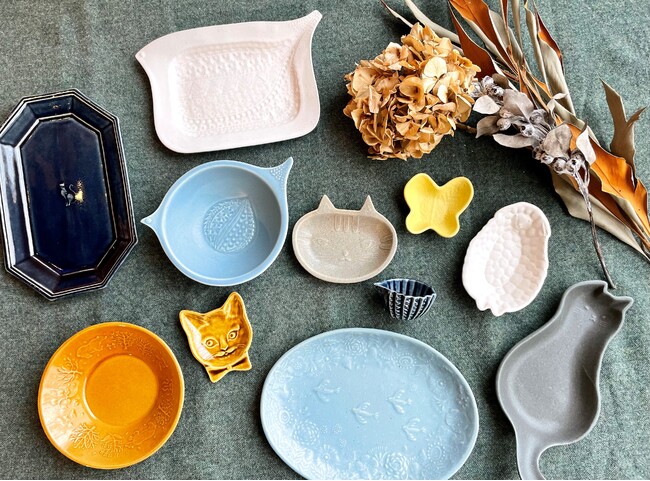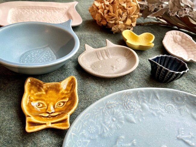「毎日の食卓がちょっと楽しく、料理をつくる元気が出てくるような」うつわを制作する益子の窯元です。吉澤泰久さん理恵さんご夫妻を中心に約30名のメンバーが、板状の粘土を石膏型に押し当てる「たたら」という手法を使って、繊細でかわいらしい器を制作しています。温かみのあるマットな質感が特徴で、本フェアでは、物語に出てきそうな動物や植物などのモチーフが人気のシリーズを展示・販売いたします。