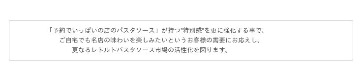 中でも外食で食べるパスタの味を家庭でも楽しみたいというニーズは高く、レトルトパスタソースにおけるお客様のニーズは、従来の利便性だけでなく、自分では作れない本格感・特別感にも広がりを見せています。