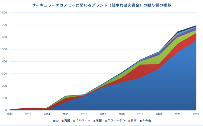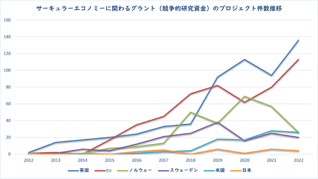 研究資金を獲得するためには、欧州ではサーキュラーエコノミーに焦点を当てることがプロジェクト採択の可能性を高める傾向がある一方、米国や日本ではあまり認識されていないようです。