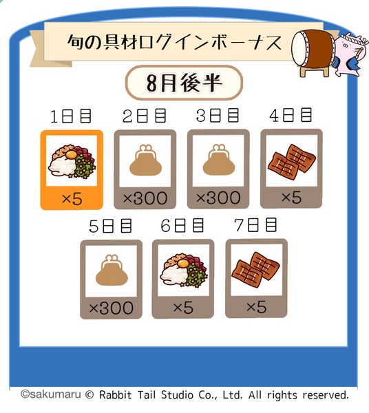 さまざまな新規ログインボーナスが開催!8月後半限定ステージで役立つ具材などもゲットできるので、もれなくログインしよう!