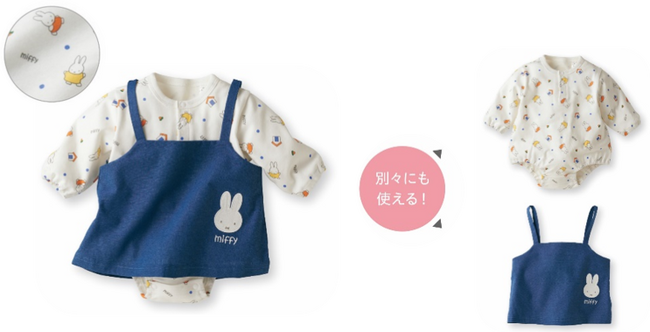 サロペット風のデザインでミッフィーのモチーフがかわいいプレオール。