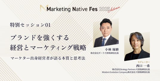 株式会社CINC(本社:東京都港区、代表取締役社長:石松友典、以下CINC)が運営するWebメディア「Marketing Native(マーケティング・ネイティブ)」は、10月8日(水)にANAインターコンチネンタルホテル東京で開催するイベント「Marketing Native Fes 2025 Autumn」の特別セッションに、ポーラ 代表取締役社長の小林琢磨さんと、Strategy Partners 代表取締役社長の西口一希さんの登壇が決定したことを発表いたします。