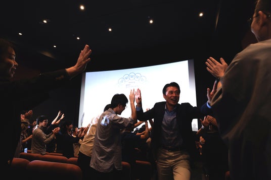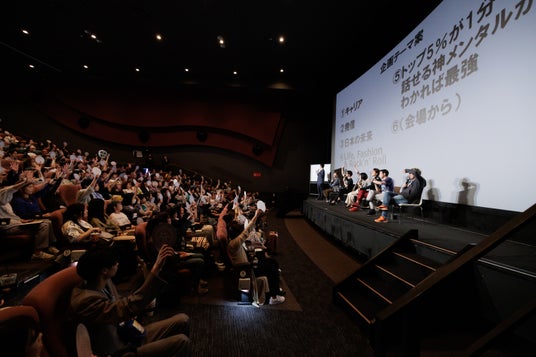 パーソナリティが退場し、会場が暗転すると、映画館のスクリーンには映画のエンドロールのような映像が流れ始めました。驚きと共に注目が集まる中、映し出されたのは、イベント当日の臨場感あふれる写真の数々。さらに、登壇者やスタッフの名前だけでなく、参加したリスナー全員の名前がリストアップされるというサプライズ演出に、会場からは大きな歓声と感動の拍手が沸き起こりました。映画館という特別な空間ならではの、記憶に残るエンディングとなりました。