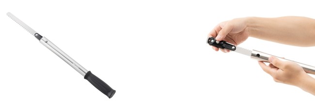 ノコギリの刃は本体の持ち手に収納されているので、すぐに付け替え可能。
