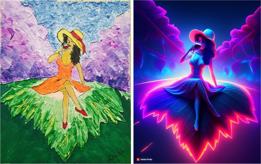 - 子どもが描いた絵をクールな雰囲気に変えたり、その絵を写実的な画像にしたり、またはその逆に、画像のスタイルを変えることもできます。絵に奥行きやテクスチャ、ライティング、色彩など様々な要素を追加することで写実的な絵に変え、命を吹き込むことができます。
